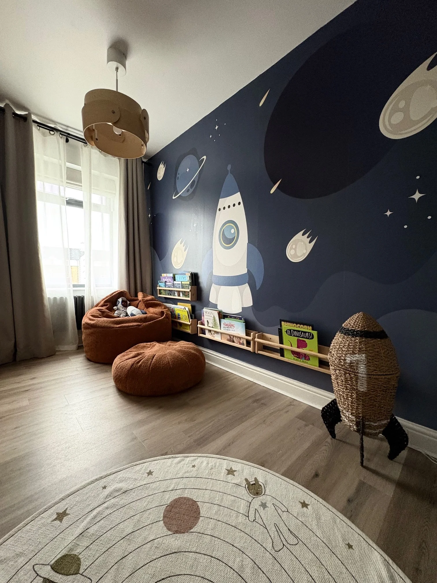 A playful yet sophisticated conservatory playroom, designed to grow with the family while maintaining a cohesive aesthetic.